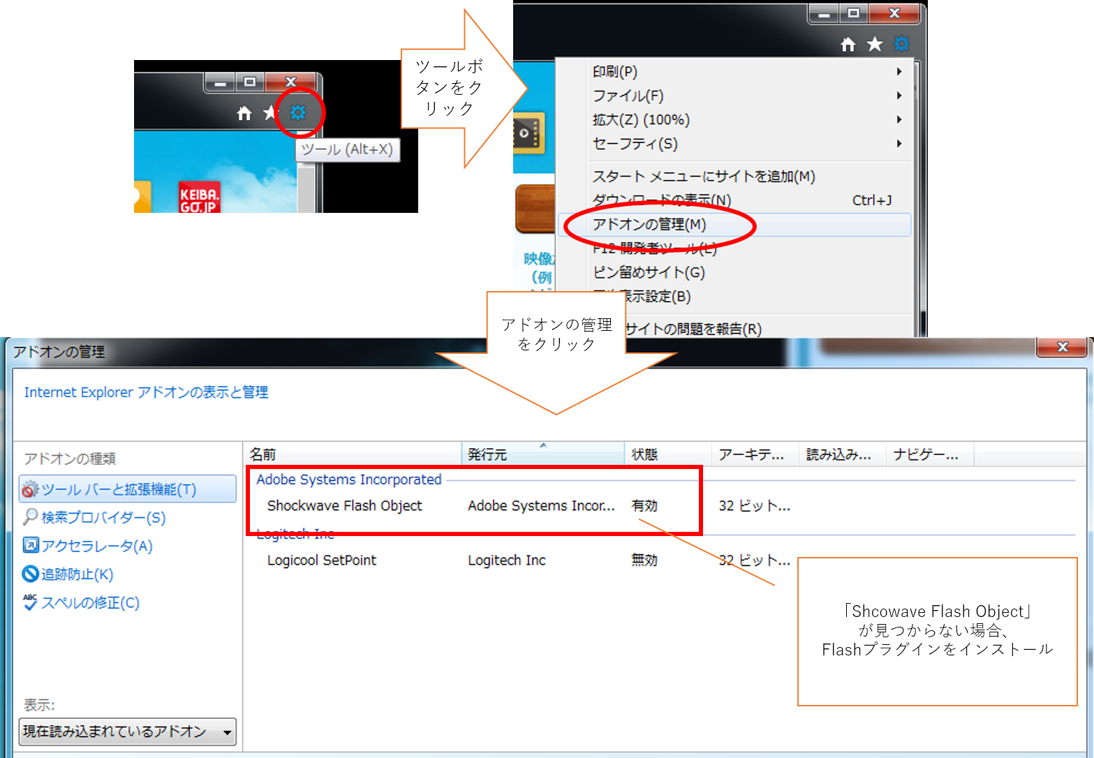 - Q.Windows7のInternet Explorerで映像が見られません。